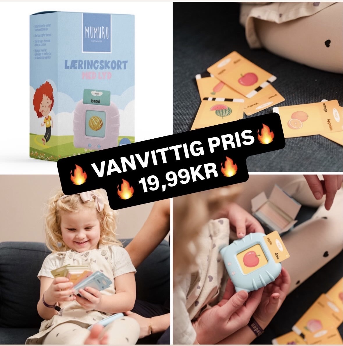 Disse farverige læringskort med lyd fra Mumuru Copenhagen, er den perfekte måde at opbygge dit barns ordforråd 🌈