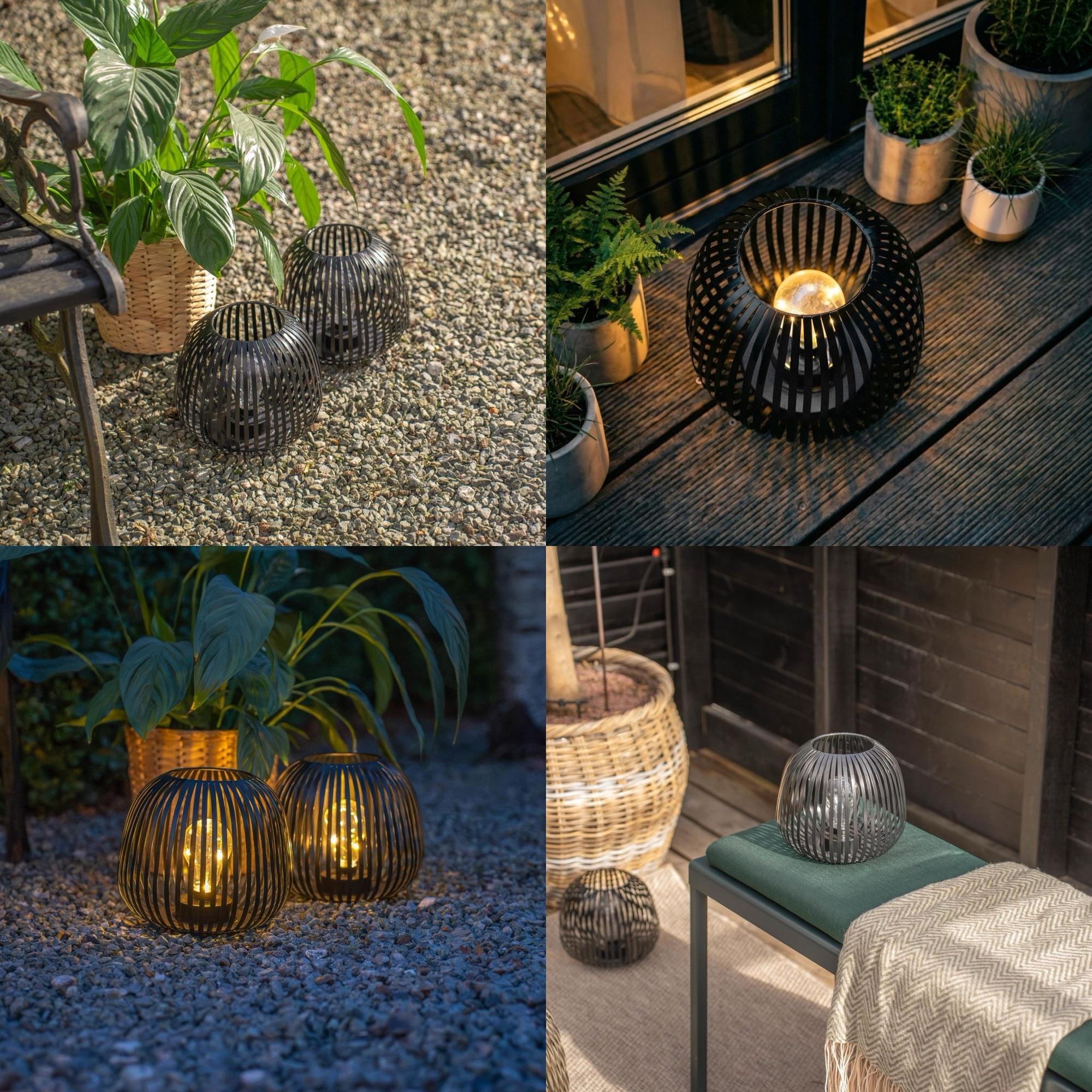 Skab en hyggelig og stemningsfuld atmosfære i haven, på terrassen eller altanen med denne elegante solcellelanterne.